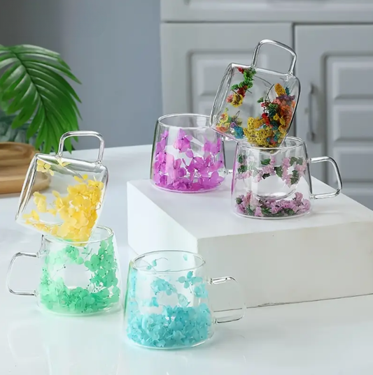 Yellow Flowers Double Wall Glass Cup